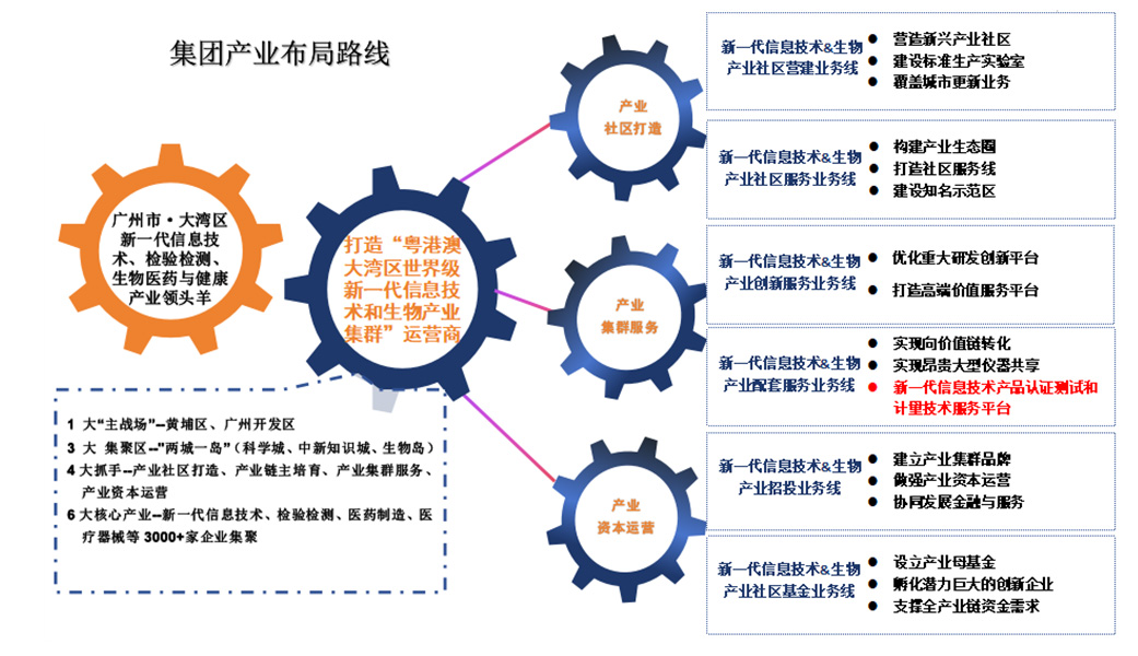 作為廣州開發(fā)區(qū)最早成立的區(qū)屬一級企業(yè)之一,高新區(qū)集團扎根于黃埔區(qū)、廣州開發(fā)區(qū),立足于"兩軸(建設(shè)、服務(wù))四輪(開發(fā)、城更、產(chǎn)服、金融)驅(qū)動產(chǎn)業(yè)(新一代信息技術(shù)、檢驗檢測、醫(yī)療器械、生物醫(yī)藥等)在高質(zhì)量發(fā)展道路上邁向新征程"的經(jīng)營發(fā)展理念,定位于產(chǎn)業(yè)全周期的健康生活引領(lǐng)者、區(qū)域全覆蓋的美好城市建設(shè)者、服務(wù)全方位的創(chuàng)新社區(qū)締造者,有序推進項目建設(shè)和現(xiàn)代服務(wù)的同時,積極加強與國內(nèi)、國際創(chuàng)新要素密切聯(lián)動、優(yōu)勢資源合理配置,打造新一代信息技術(shù)、檢驗檢測、生物醫(yī)藥與健康產(chǎn)業(yè)新高地,爭創(chuàng)產(chǎn)業(yè)先導(dǎo)區(qū),圍繞"三大板塊,六條業(yè)務(wù)線"打造粵港澳大灣區(qū)世界級產(chǎn)業(yè)集群運營商。